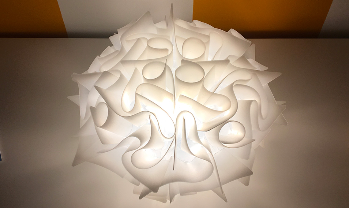 Che le lampade Slamp fossero realizzate in materiali plastici di grande qualità, già avevo avuto occasione di vederlo al Casa Facile design LAB ed infatti, l’Opalflex®, il tecnopolimero opalino con il quale è composta la lampada Veli, è nobile ed infrangibile.