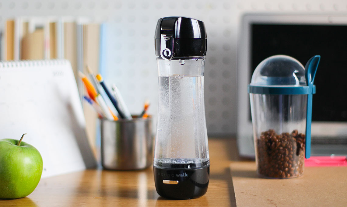 La bottiglia Gaura Walk da 300 ml si ricarica con una presa usb (come uno smartphone) ed è pronta ad accompagnarti in giro tutta la giornata perché può ‘idrogenare’ 4,2 litri d’acqua con una carica completa: basta semplicemente premere il pulsante colorato sulla base. È realizzata con plastica riciclata, non necessita di parti di ricambio ed è disponibile in 9 colori diversi.