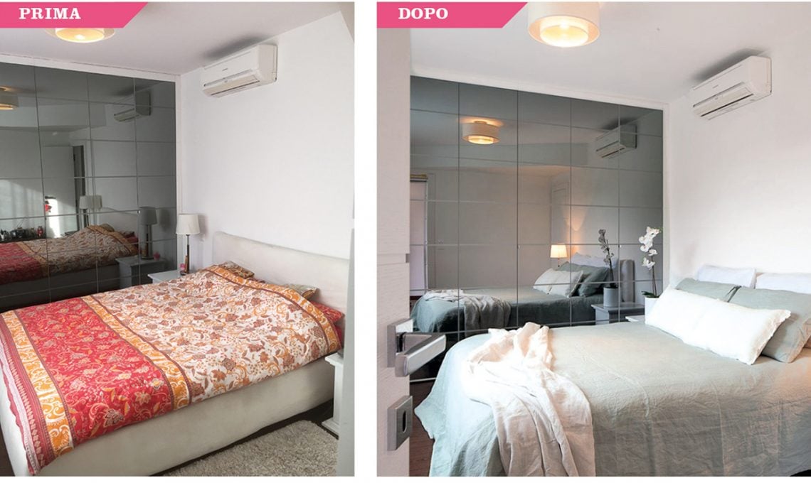 Il prima e dopo l'intervento della home stager di una camera da letto. Qui il lavoro è semplice ma efficacissimo: via il copriletto personalizzato, meglio colori neutri che incontrano più facilmente il gusto di tutti