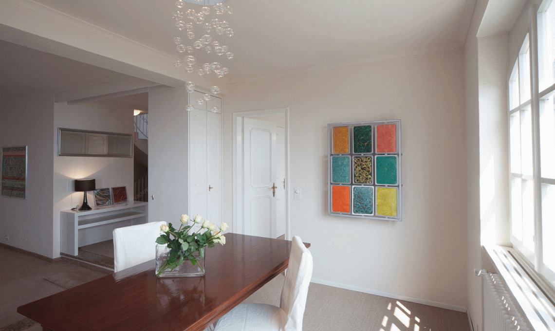 Dopo: il quadro porta un tocco di colore ma non è eccessivamente caratterizzato, così può incontrare il gusto di più persone. Le sedie rivestite di bianco creano ordine e pulizia