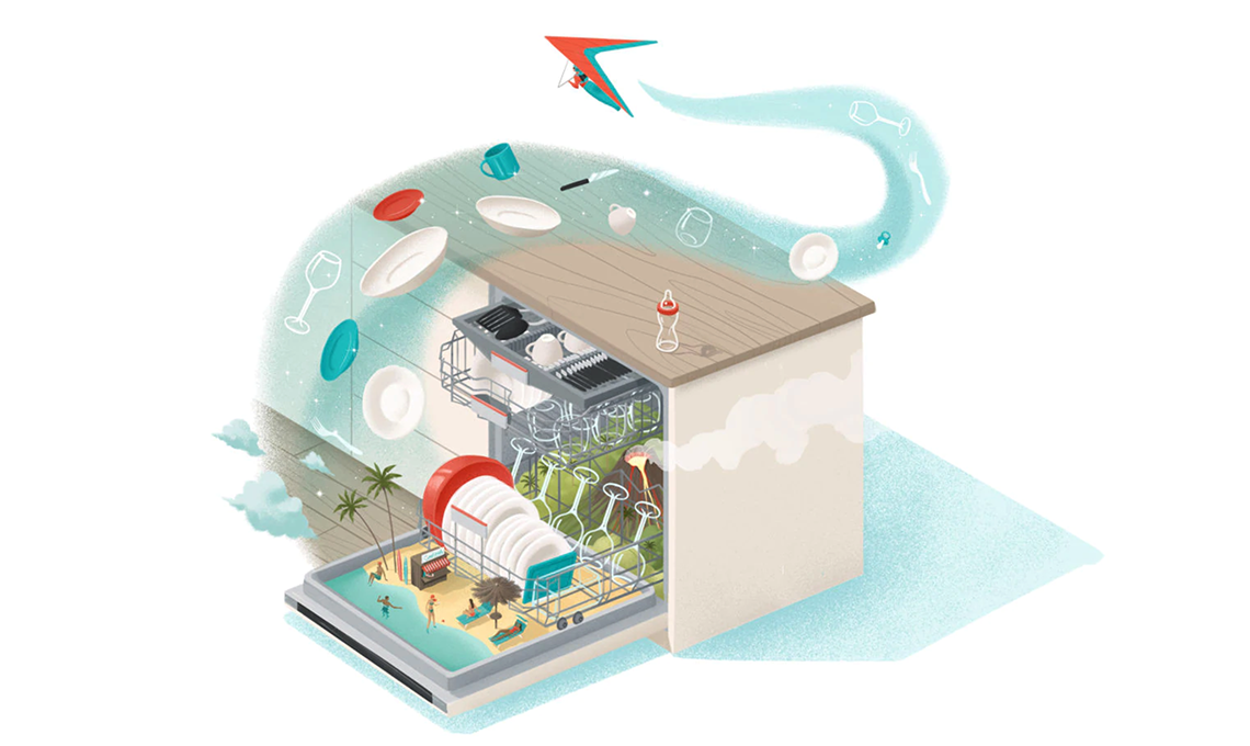 L'illustrazione della lavastoviglie è opera di Andrea De Santis, (su Instagram: @andreadesantisillustrator).