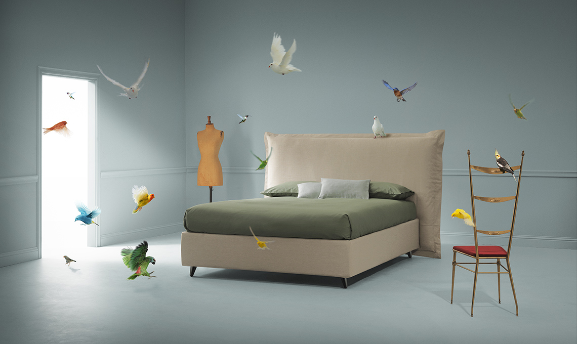 È questo il letto per il quale ti chiediamo di creare una parure composta da lenzuolo di sopra, lenzuolo coprimaterasso e 2 federe. È il modello Abito di PerDormire, che fa parte della collezione 'Una fiaba PerDormire' disegnata da Fabio Novembre.