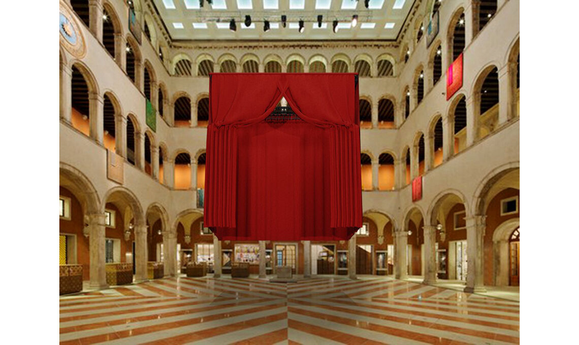 Il sipario permette di evocare il mondo sconosciuto nascosto dietro di esso. Per una parte della sua installazione site-specific intitolata 'Second Act', ideata assieme allo scenografo Theun Mosk, l’artista olandese ha scelto di mettere in scena quattro lunghi sipari, sospesi nella corte interna del Fondaco dei Tedeschi, che celano una rappresentazione di cui non si conosce la trama. Il visitatore diventa così spettatore, partecipe di un’esperienza dall’epilogo incerto, così come quella vissuta in questo periodo di pandemia: «Quando il sipario si aprirà, cosa vedremo?».
