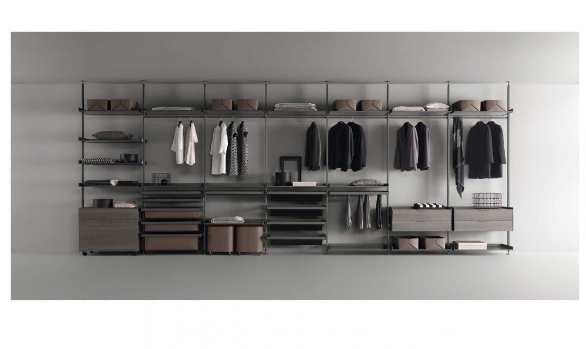Zenit di Rimadesio è un sistema dalle possibilità molteplici, che può creare composizioni libreria per la zona giorno e cabine armadio per la zona notte