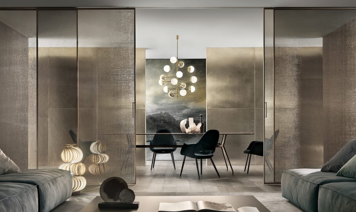 Nel 1992 arriva il concetto di sistema scorrevole pensato per la casa, grazie alla geniale intuizione di Giuseppe Bavuso (il designer di riferimento dell’azienda). Un vero e proprio punto di svolta per Rimadesio che promuove così l’idea moderna di libera organizzazione dello spazio.