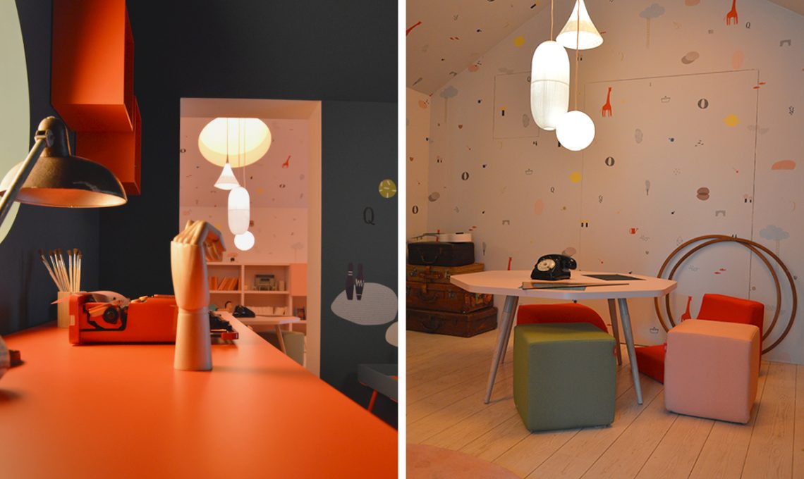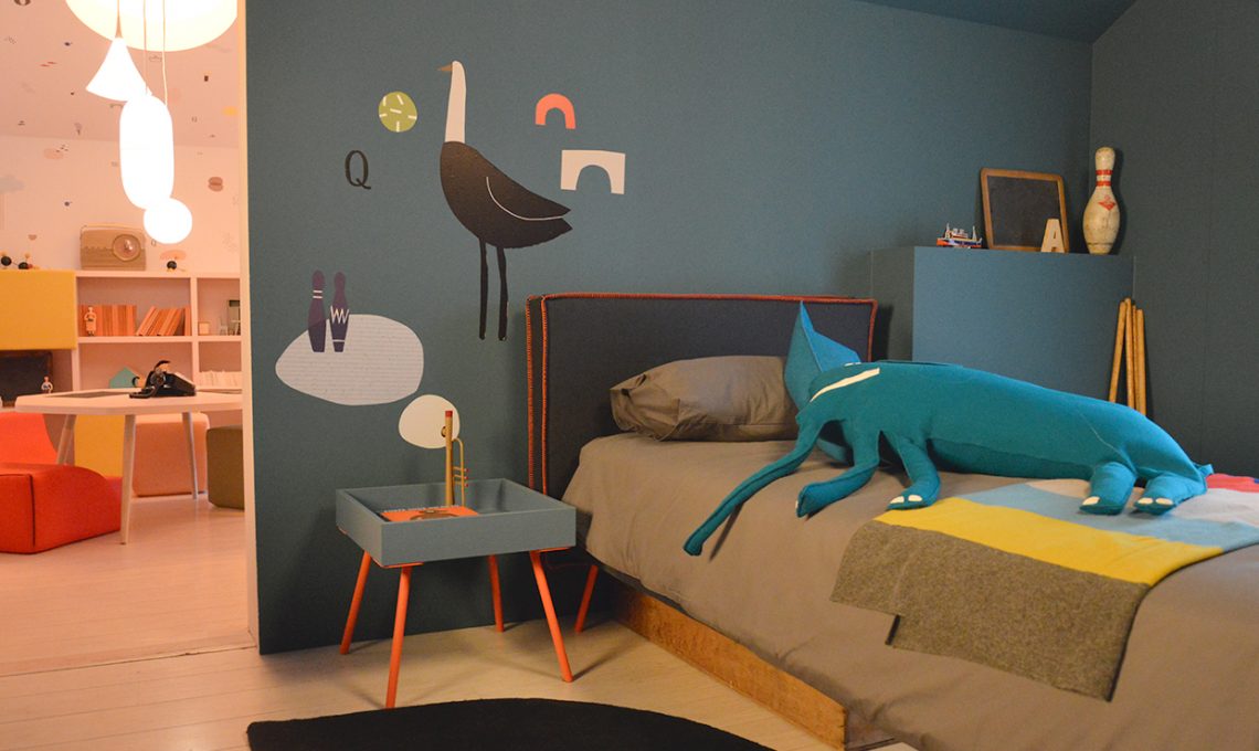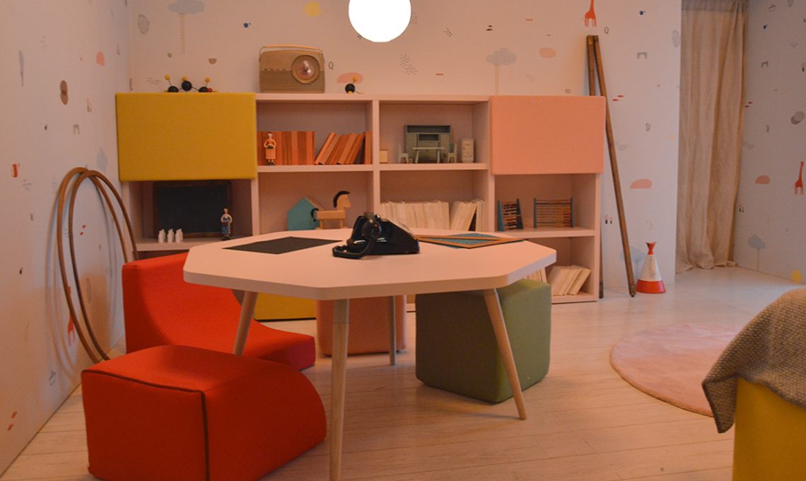 Sarete accolti in un ambiente vivace e colorato, dove spicca la nuova collezione di stickers, tappeti, carte da parati, tavoli e pouf inseriti in uno spazio espositivo in cui sono ricreate due vere camerette arredate e decorate.