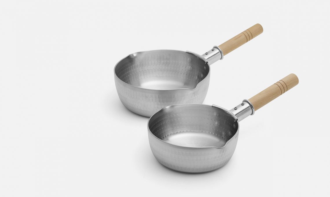 In alluminio martellato, si tratta di un ottimo esempio di design funzionale: è infatti dotato di piccoli solchi esterni che aumentano la conduzione termica, accelerando il processo di cottura, mentre quelli all’interno evitano che il cibo si attacchi sul fondo.(€24,00 / €27,00)