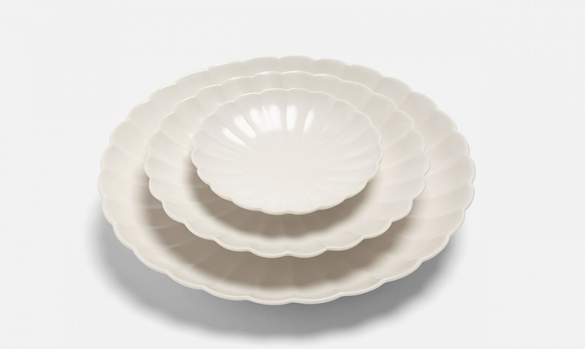 Una collezione in porcellana di Arita disegnata dal designer giapponese Masanori Oji: il colore bianco opaco è quello naturale dell’argilla locale, che è semplicemente trattato con uno smalto paglierino (€15,00 /