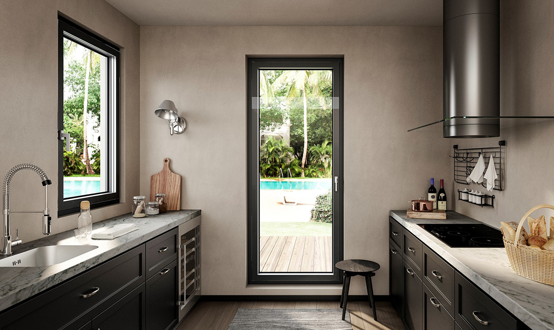 Un serramento di design che lascia spazio al vetro e punta su tre elementi fondamentali: la luce naturale, le trasparenze e l’essenziale. La finestra è disponibile nel colore grigio antracite sul lato interno, mentre all’esterno è possibile scegliere tra una ampia gamma di varianti colore e finiture.
