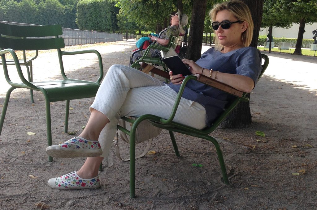 Tutti i giardini pubblici parigini mettono a disposizione di cittadini e turisti centinaia di sedie e poltrone Senat in acciaio e legno... come non approfittarne per rilassarsi un po' all'ombra di un albero?