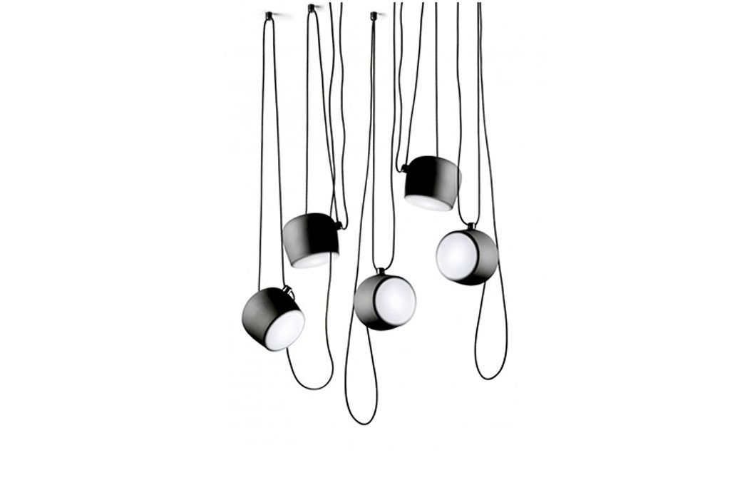 Sospensione AIM in alluminio: lo speciale saliscendi permette di posizionarla a piacere (Flos, 2013)