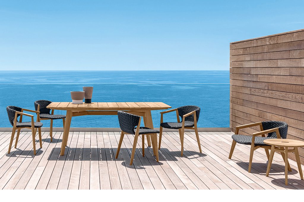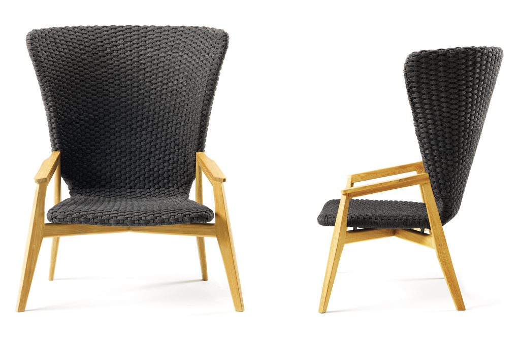 Disegnata per Ethimo, la poltrona Knit ha un’anima ‘tradizionale’ in teak (un po’ stile Anni ’50), ma indossa un abito ultramoderno: un rivestimento intrecciato in 3D, resistente e morbidissimo.