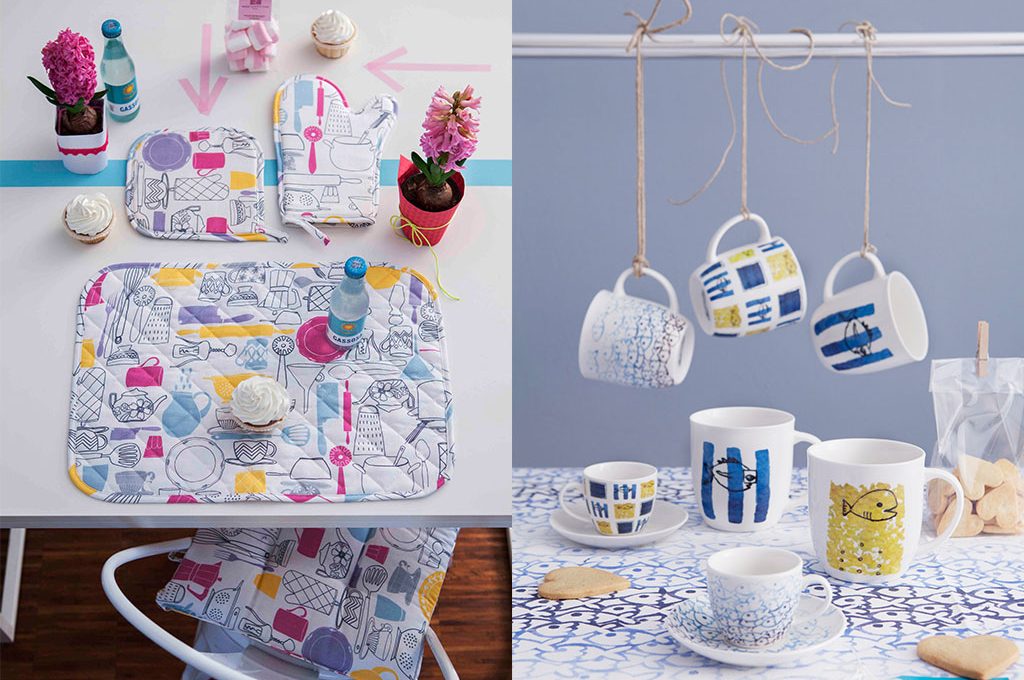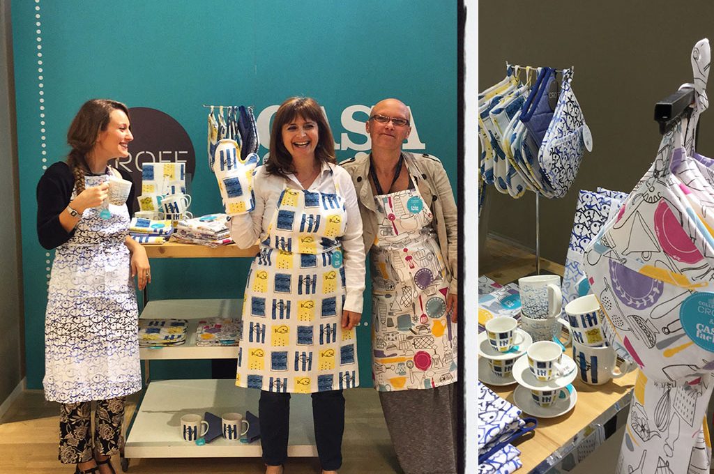 La vera produzione 'di massa' però è arrivata adesso, con la Capsule Collection che ha visto CasaFacile in partnership con il marchio Croff. E l'emozione di vedere prodotti gli oggetti con la propria texture, acquerello, timbro o disegno al computer che sia, l'ho vista forte negli occhi di Francesca e delle 2 Elisa (sì, le Elisa sono due!). Non è solo questo: grembiuli, tovaglie e tovagliette ..... non solo adesso hanno una forma ma sono distribuiti in tutta Italia, in quasi 200 punti vendita... E si sa già, ce l'hanno confidato gli amici di Croff, che le vendite della Capusule, perfettamente integrata nella loro collezione Primavera/Estate, vanno benissimo, 'rischiando' di fare il botto! Fu così che anche la mia, di emozione, si unì a quella delle giovani designer, l'altro giorno a Mestre, quando, nel quartier generale del gruppo abbiamo toccato con mano (è proprio il caso di dirlo) quello che qualche mese fa era solo uno schizzo... Che l'avventura abbia inizio, dunque! Con tanto tanto orgoglio: quanti sono i giornali, in Italia almeno, che possono dire di avere una linea griffata, con il proprio nome stampato sopra?