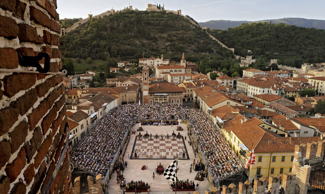 Un evento che ha reso famosa la città di Marostica (in provincia di Vicenza) e che coinvolge più di 600 figuranti in costume storico che rievocano quel 'duello' sulla scacchiera in una suggestiva cornice di giochi di luce, acrobati, giocolieri e sbandieratori