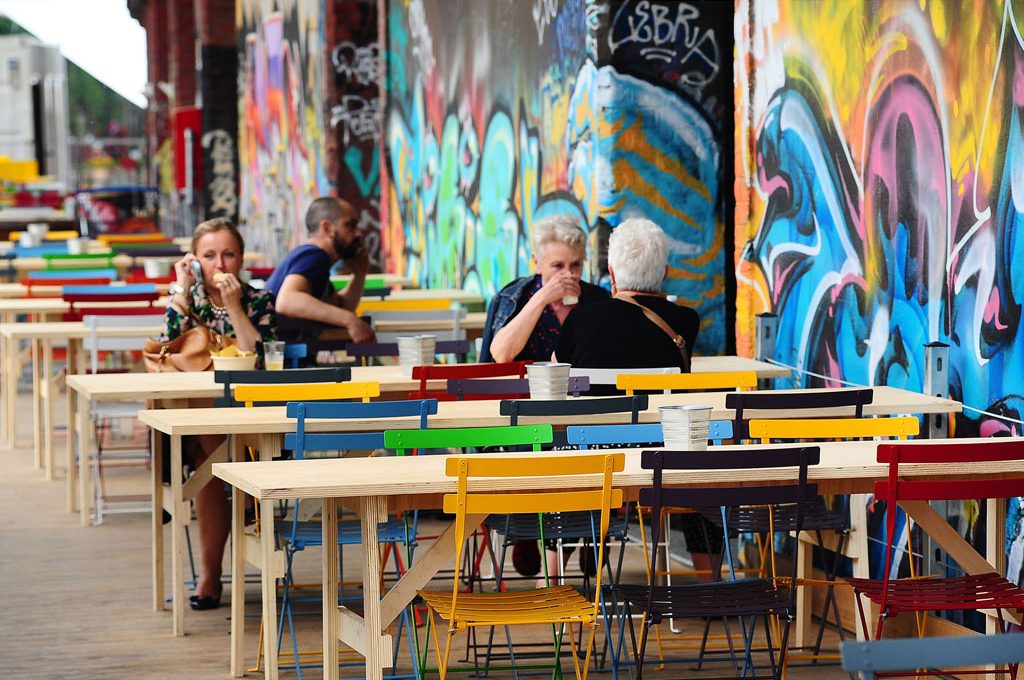 Una novità per Milano è l'affollatissimo e divertente Mercato Metropolitano, grande farmers market e luogo di eventi a Porta Genova. E fino al 31/8, alla rinnovata Darsena, è aperto anche il ristorante, che vedi in foto, con le sedie Fermob