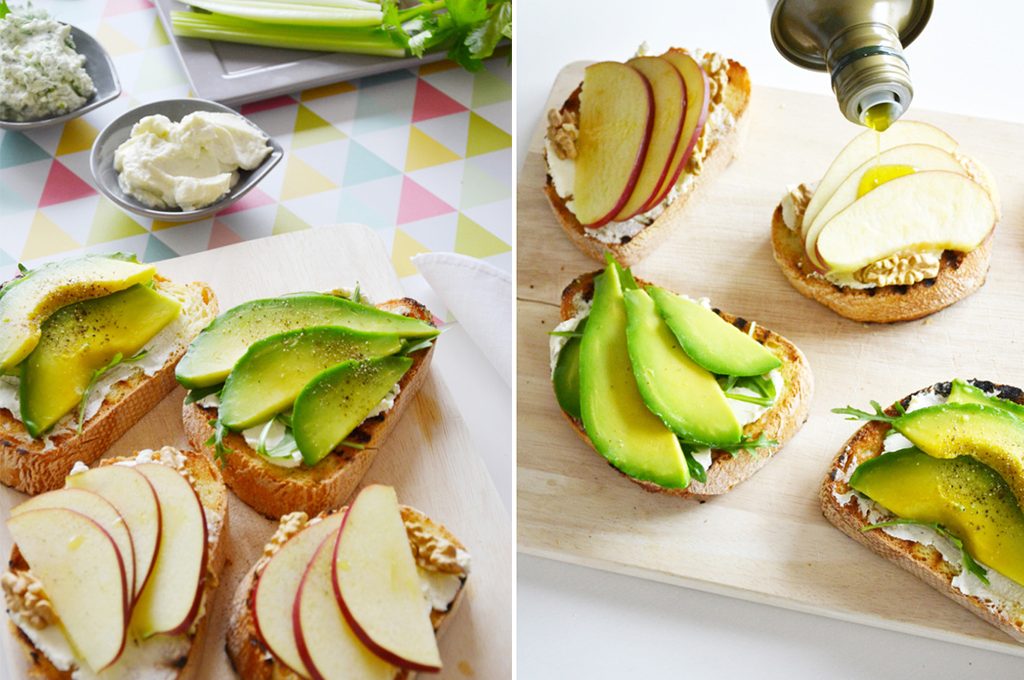 bruschette con avocado e mele