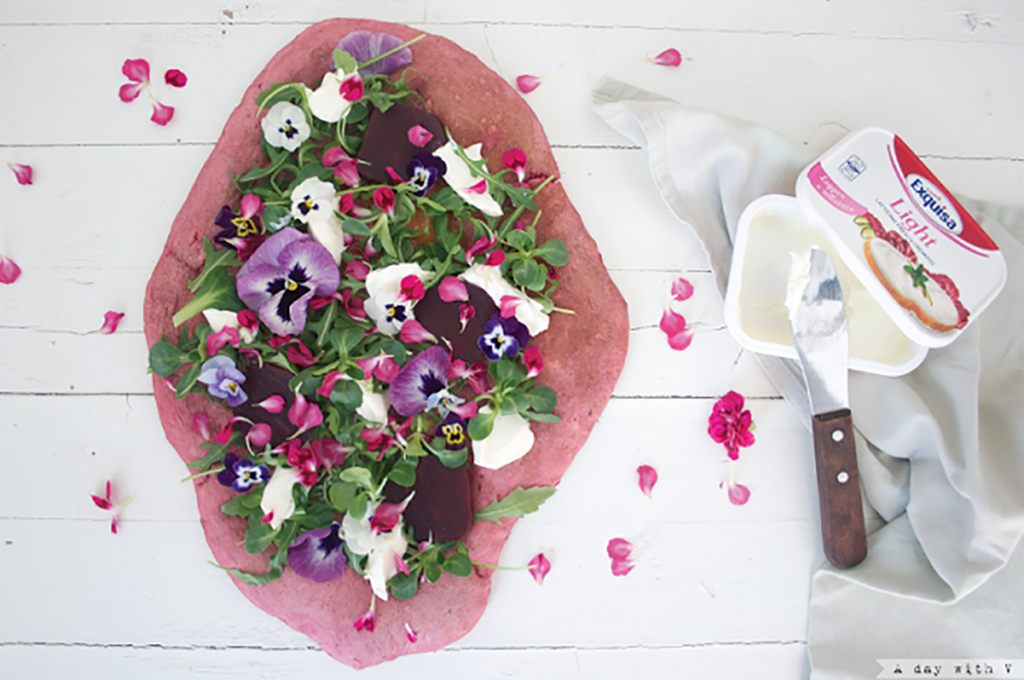 pizza fiorita alla barbabietola