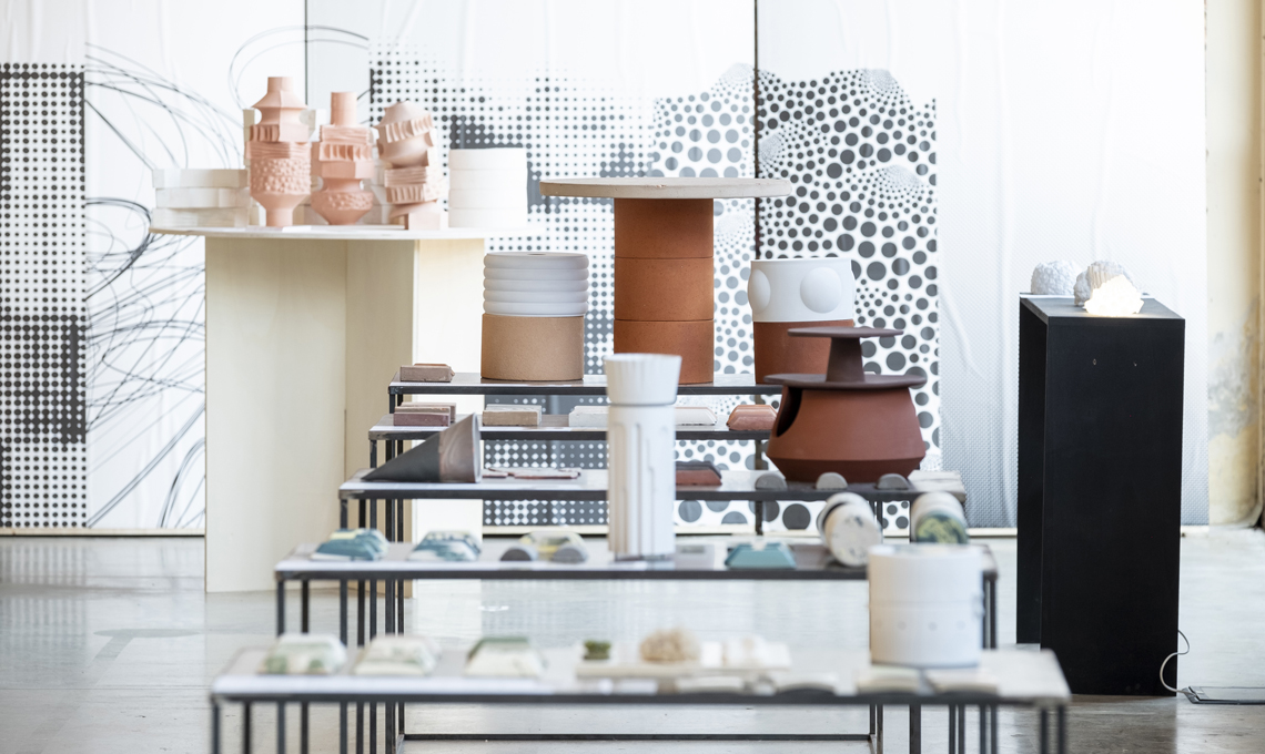 Anche a livello di materiali, la ricerca è stata approfondita: gli studienti hanno sviluppato impasti da grès adatti a due tipi di foggiatura: a colaggio (impasto a sospensione acquosa) e allo stato plastico (per le integrazioni decorative). Quindi i materiali sono stati colorati in base al registro stilistico individuato, con l'obiettivo di ottenere tonalità polverose, utilizzando pigmenti ceramici industriali sapientemente dosati e miscelati.