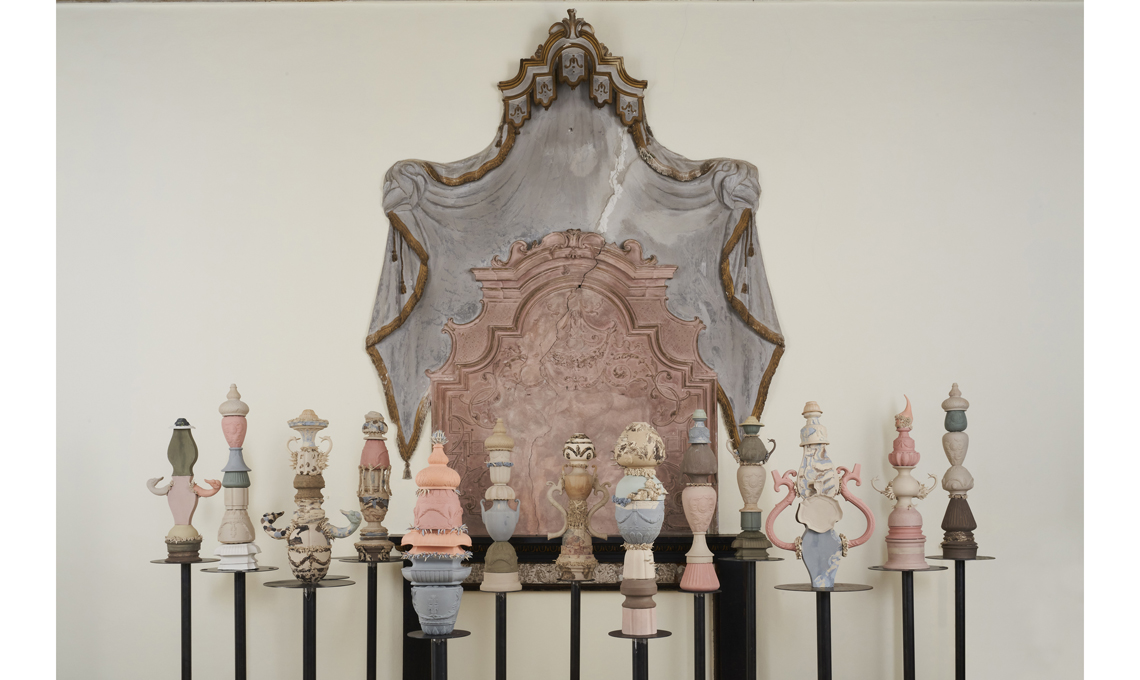 Così, nel corso del workshop, grazie a una ricerca d’archivio e al recupero di calchi e immagini provenienti dall’ISIA, dalla Real Fabbrica di Capodimonte e dal suo laboratorio, Cibelli ha guidato la realizzazione di una collezione di totem ceramici dove ogni elemento è frutto di un lavoro di coordinamento, all’insegna della condivisione e della sperimentazione.