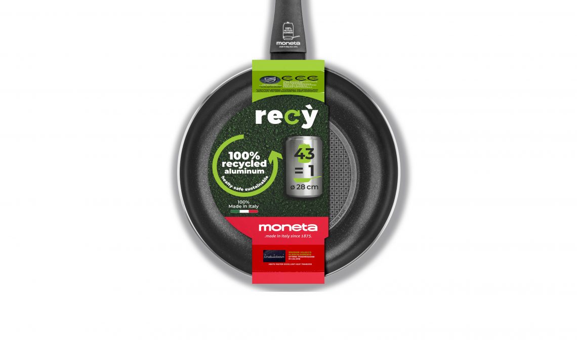 - Recy di Moneta: la linea di di pentole in alluminio 100% ricavato da lattine usate. Sapevi che ci vogliono 80-100 anni per smaltirne una? La padella Recy da 28 cm di diametro è creata con 43 lattine. Queste pentole sono adatta a tutti i fuochi, anche induzione e sono Made in Italy.