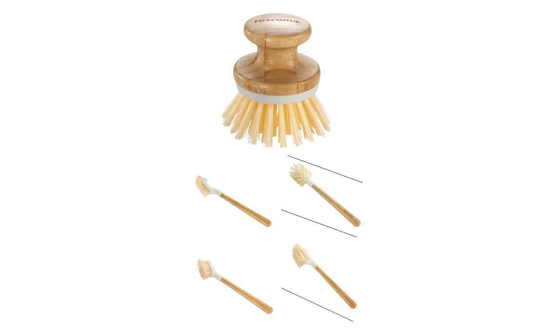 - Il portapane di Tescoma con coperchio di bambù che funge da tagliere. All'interno un vano porta coltello, le prese d'aria regolabili per una migliore conservazione del prodotto e antispreco. Sempre di Tescoma una linea di spazzole con manico in bambù per la cura della casa, utilissime ed ecosostenibili.