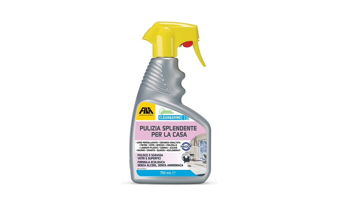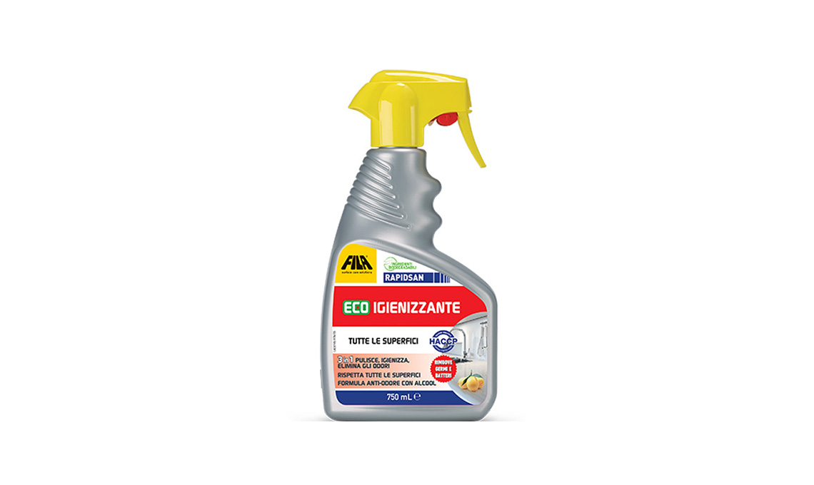 - Per una pulizia sempre efficace e un’azione igienizzante, basta scegliere CLEAN&SHINE e RAPIDSAN. Il primo non contiene alcool né ammoniaca e ha una formulazione delicata ma sgrassa in modo eccellente. Non necessita di risciacquo e deterge tutte le superfici: rivestimenti, ceramica, laminati plastici, superfici smaltate, acciaio inossidabile, vetri e specchi. Il secondo ha una formula 3 in 1 che pulisce, igienizza a fondo ed elimina gli odori grazie all'essenza naturale di Tea Tree ed è perfetto per i piani in marmo, granito, agglomerati in marmo e quarzo.