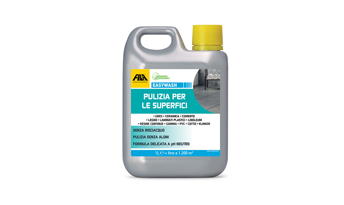 - Per il pavimento della cucina EASY WASH pulisce delicatamente rispettando tutte le superfici, anche le più delicate. Ha una formula biodegradabile e dona un pulito splendente senza bisogno di risciacquare