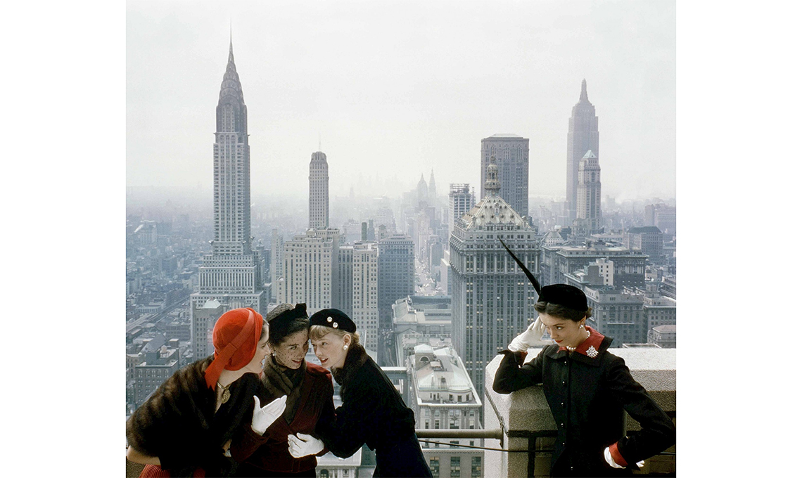 Dal tetto della sede della casa editrice Condé Nast in Lexington Avenue a New York. Scatto di Norman Parkinson pubblicato sulla rivista Vogue America, 15 Ottobre 1949.