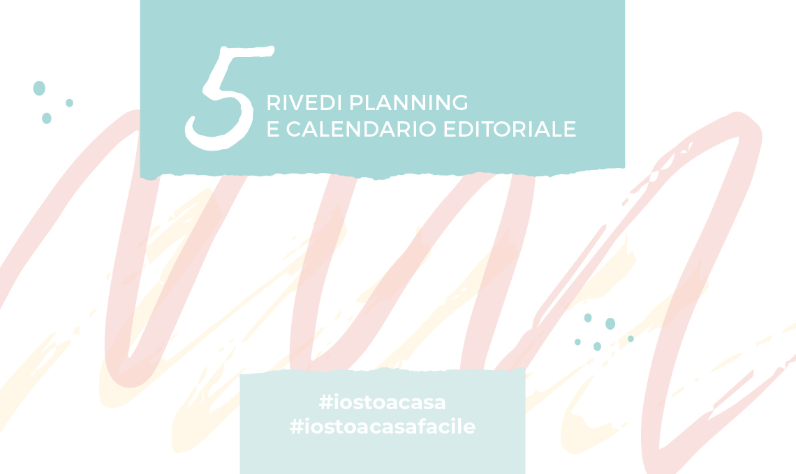 Mai come in questo momento avrai da rivedere la pianificazione di questi mesi. Rivedi i periodi di lancio per i prossimi servizi e/o prodotti, riprogramma in agenda gli eventi e le fiere posticipate, rivedi quando e come poter riorganizzare corsi e workshop che avevi programmato. Magari c'è pure qualcosa che puoi spostare dal vivo al virtuale: un workshop online o un video tutorial potrebbe essere un'idea carina per chi si aspettava di fare con te la stessa cosa dal vivo.