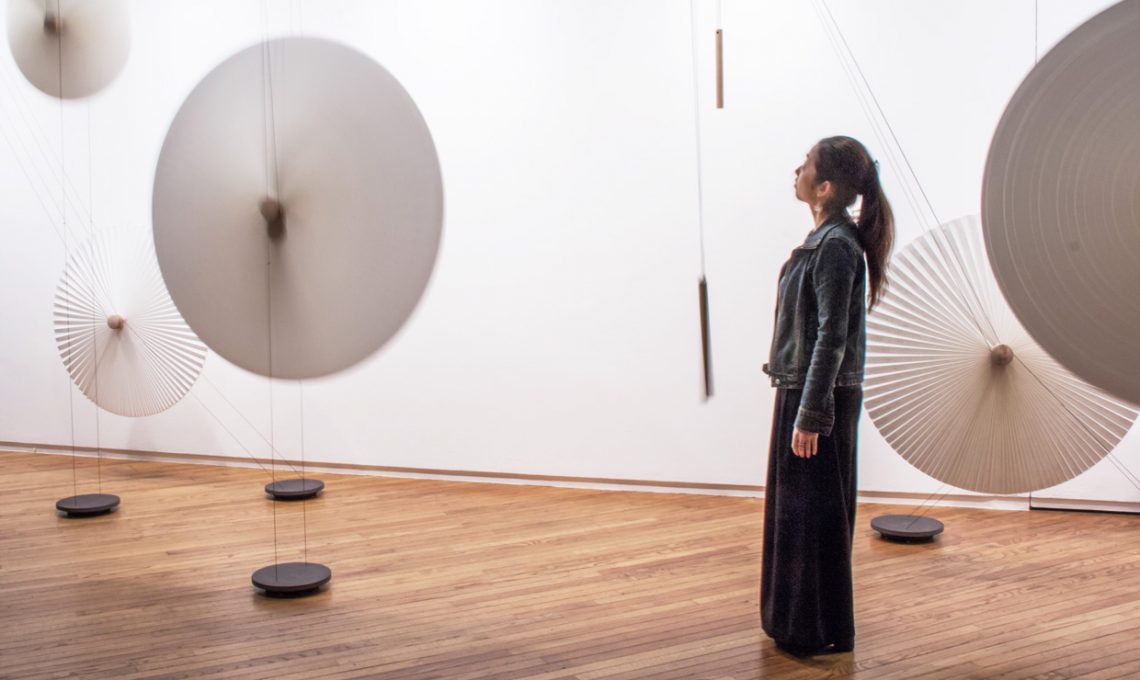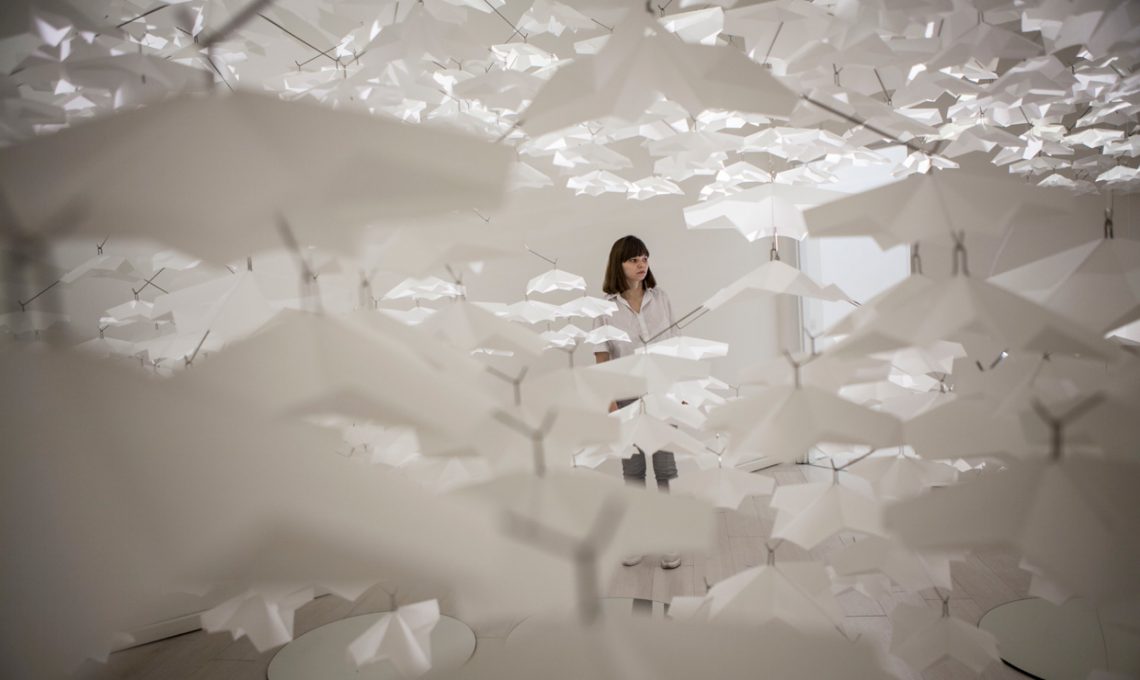 Nella grande stanza della katana, l’allestimento di atelier oï è in apparente contrapposizione, ma crea invece un grande equilibrio e vuole ricreare con un materiale bianco e leggero come la carta, la serie ripetitiva di gesti che portano alla realizzazione di una katana: un'installazione che rimanda anche al movimento dell’universo, attraverso un meccanismo che fa muovere le grandi 'girandole' scenografiche come uno yo-yo, in circolare e allo stesso tempo in lineare.