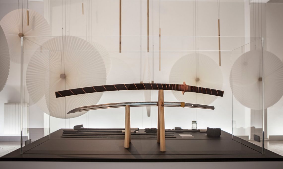 Per Casa Gifu II si è pensato ad un allestimento che potesse mettere in luce alcune lavorazioni artigianali e preziosissime della città di Seki, come la produzione di coltelli e forbici di altissima qualità e la forgiatura delle katane, le spade d’acciaio, che prevede una lunga lavorazione manuale da parte dei fabbri / artisti e una sapienza che si trasmette da oltre 700 anni di generazione in generazione.