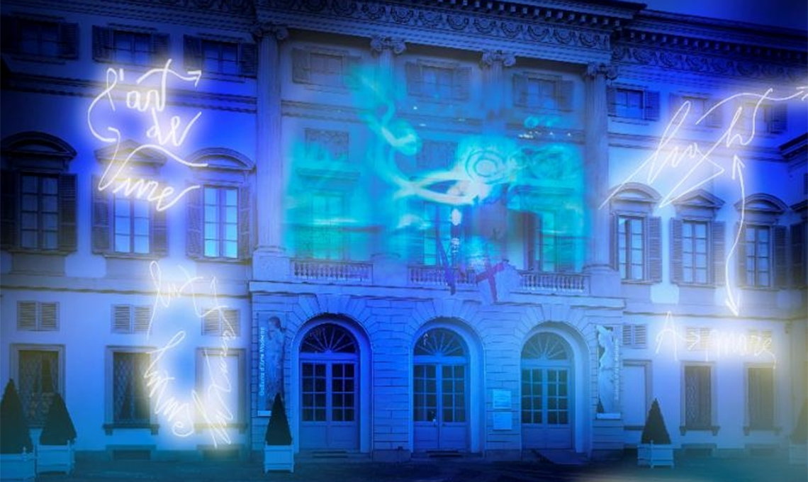 L'installazione, opera di Marco Nereo Rotelli, trasformerà Villa Reale in un immenso quadro luminoso raccontando ed interrogando sui segreti della luce nella pittura . Dai cieli del grande Tintoretto a Canaletto a Tiziano ma anche e specialmente ai cieli nei quadri presenti nella sale del Museo, da Morbelli a De Nittis , da Previati a Boccioni. (ERCO Illuminazione - Lighting Show).