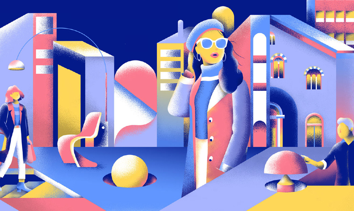 Una sferzata di colore invade il fuorisalone nello spazio in cui saranno esposte le lampade di Sowden, le collezioni di oggetti decorativi di Raawii e le stampe di Wrongshop.