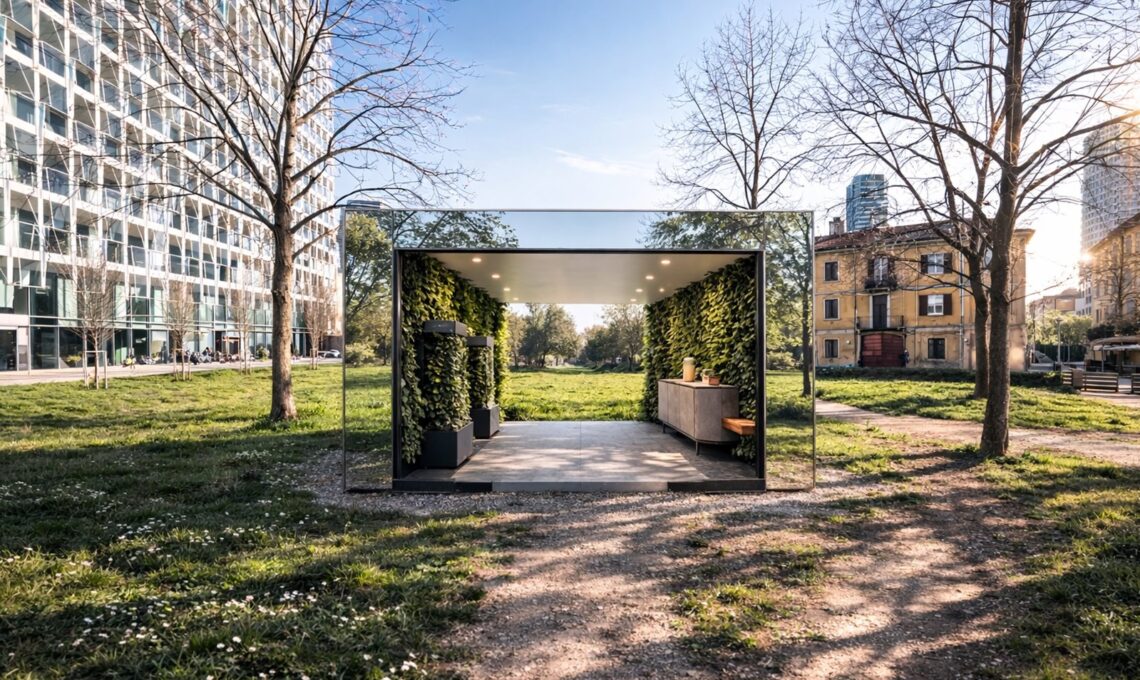 Nell’area verde adiacente al Bosco Verticale, sorge una piccola capsula esperienziale dove la natura incontra l'architettura urbana. Un guscio specchiante che scompare nel paesaggio per racchiudere al suo interno un micro-ecosistema di verde verticale, progettato per migliorare il comfort ambientale e il benessere indoor attraverso l'aria naturale [via Gaetano de Castillia 23]