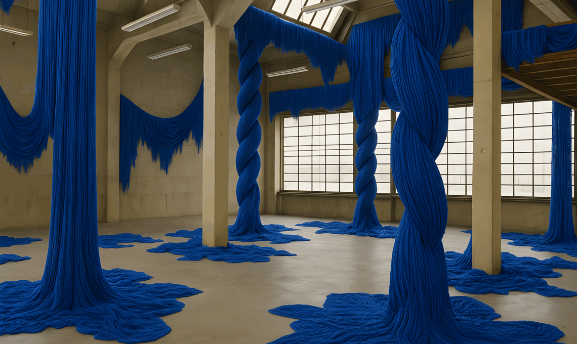 All'esterno di STECCA3, una grande installazione tessile immersiva di La Tête Dans Les Nuages con Amy Tidmarsh trasforma tessuti di mongolfiere recuperati in vele monumentali sospese su strutture modulari. Animate dal vento, le superfici tessili generano uno spazio vivo fatto di colore, movimento e luce [Stecca3, Via Gaetano de Castillia 26]