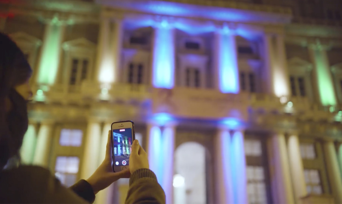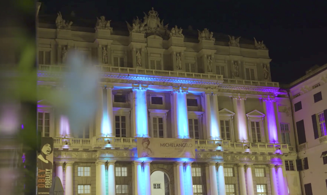 In questi giorni, durante il Festival della Scienza, HugForUs approda anche a Genova sulla facciata di Palazzo Ducale, grazie ad un’installazione artistica curata dalla lighting designer Liliana Iadeluca, con il supporto di Axpo Italia.