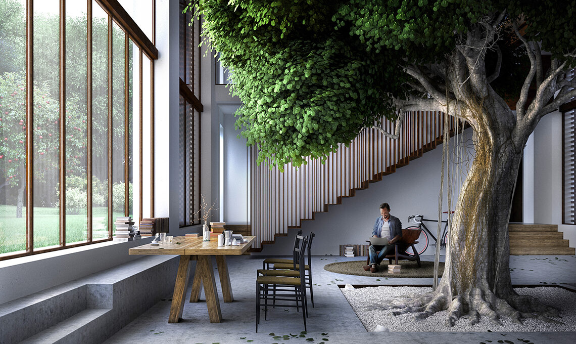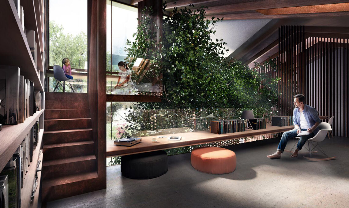 il progetto dello Studio Carlo Ratti Associati per la ristrutturazione di un casale che al centro della zona giorno ospita un albero di 50 anni. Il casale, una residenza privata vicino a Parma, è il primo step del masterplan per Mutti, azienda leader nel comparto del pomodoro, vinto dallo Studio nel 2017, e sarà realizzato entro questo autunno.