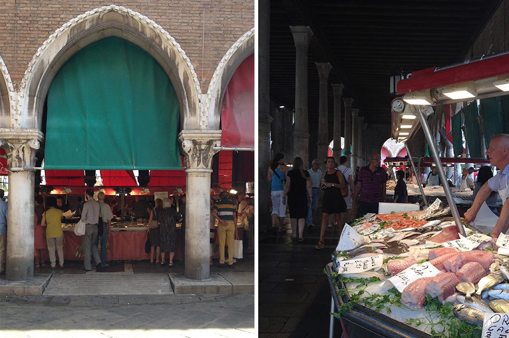 antica pescheria il mercato si tiene al mattino, praticamente ininterrotto dal ’500 a oggi. Anche se è affollato dai turisti, i veneziani vanno qui a comprare pesce e verdura, freschissimi e di qualità.