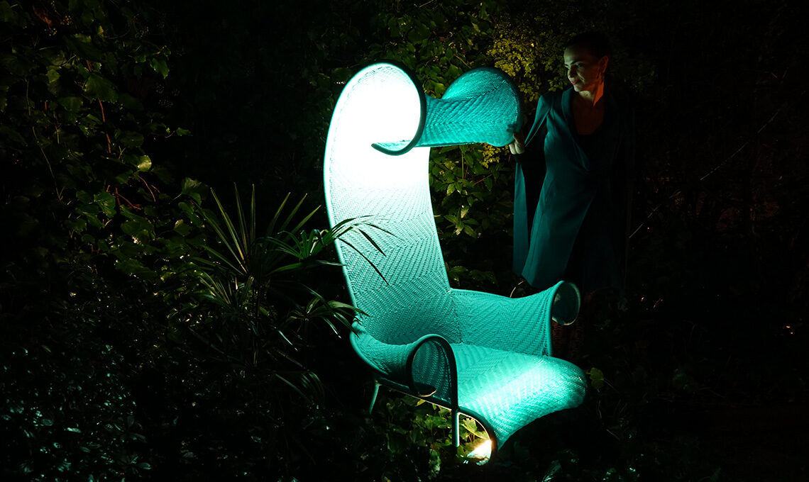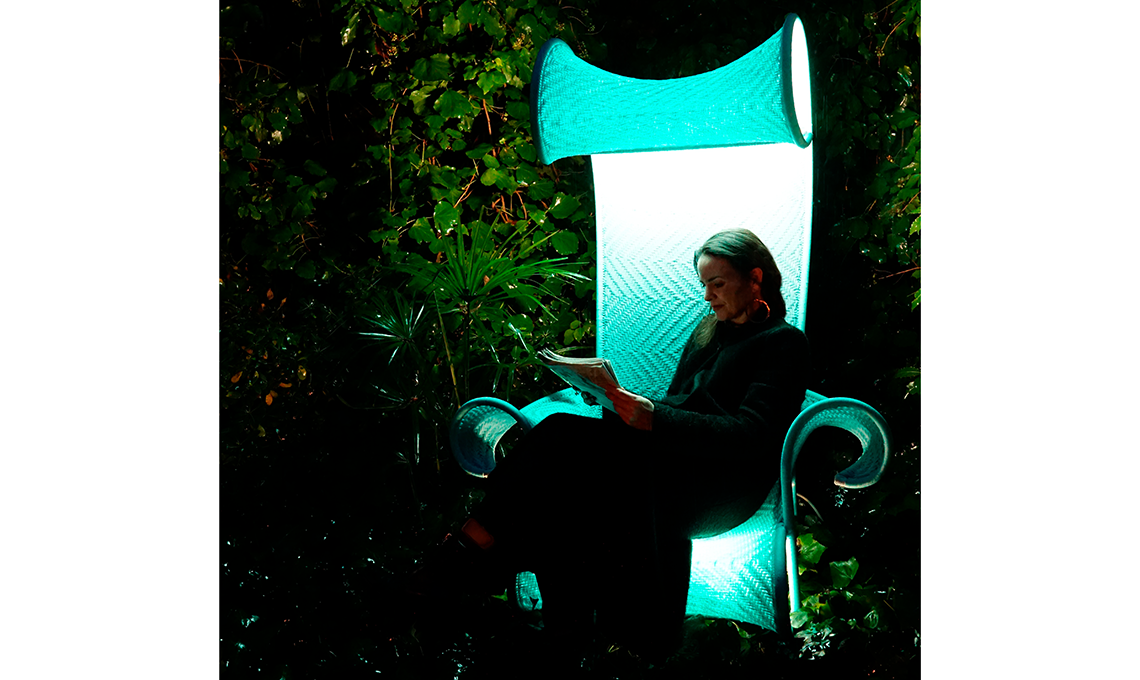 Da qui nasce l’intervento di 'hackeraggio' luminoso, praticato sulla seduta Shadowy, icona del famoso brand friulano Moroso disegnata da Tord Boontje, che viene trasformata in una speciale seduta da esterno per la lettura in notturna.