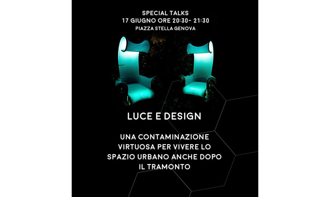 - Giovedì 17 giugno - Luce e Design: una contaminazione virtuosa per vivere lo spazio urbano anche dopo il tramonto. La Lighting designer Stefania Toro, autrice dell’installazione 'Molecule | Modular green space' in Piazza Stella, intervista la Designer Giorgia Brusemini sul progetto ospitato 'Hacking with light...al calar della sera'.