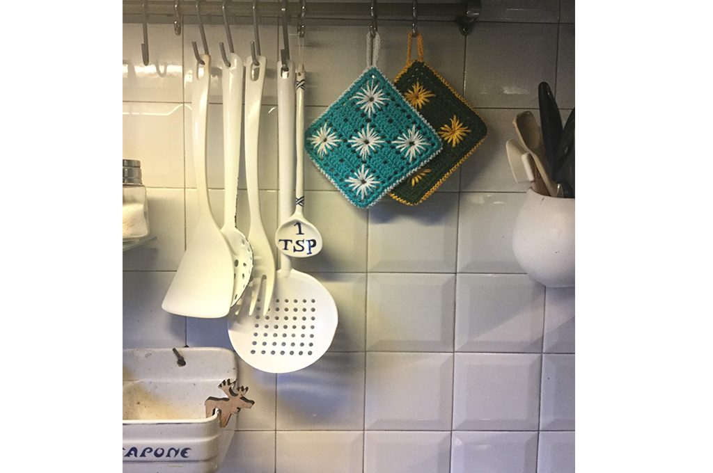Irma non conosce la noia e nemmeno io quando sono con lei. Poi apre un cassetto e tira fuori il suo regalo per me, due presine a crochet che ha appena finito, non un riciclo. Il mio regalo di Natale più bello. Non si offendano tutti gli altri.