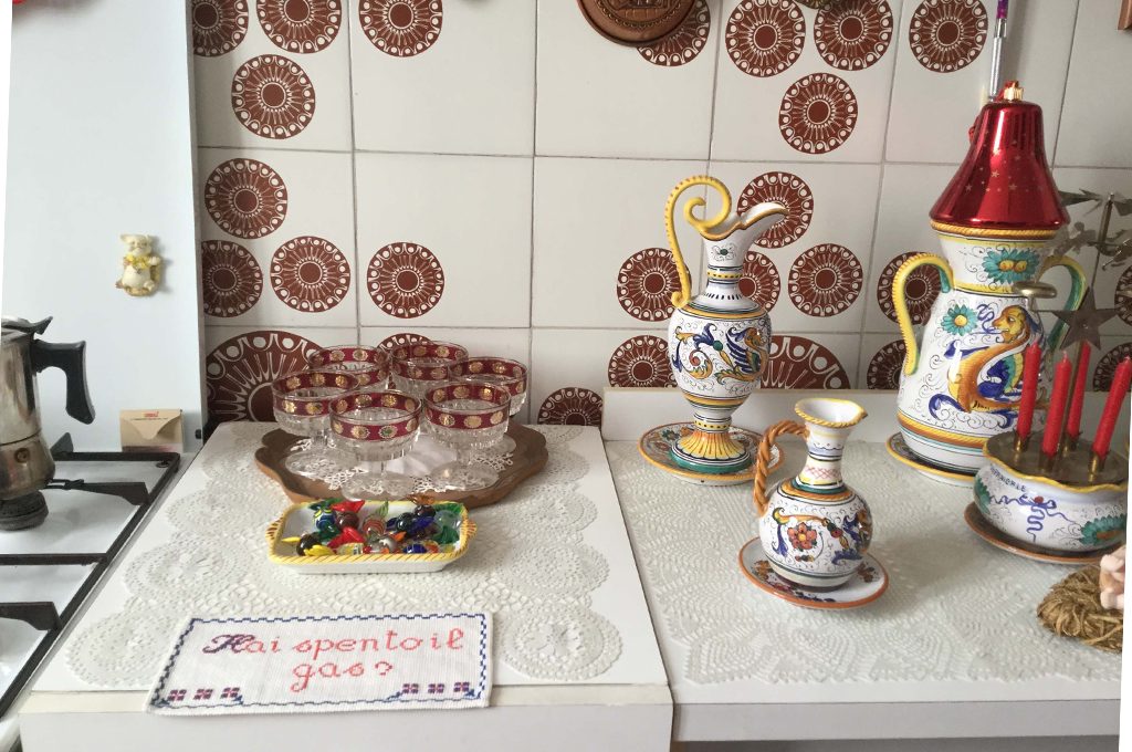 La sua è una casa piena zeppa di ninnoli, ognuno ha la sua storia; e se qualche pezzo non le piace non lo butta, nemmeno se lo trova un po' cafone ("i regali non si buttano mai, semmai lo metto qui, un po' nascosto"). Due stanzette piene di luce e pulitissime, senza un granello di polvere, e ci tiene a dire che fa tutto da sola ("mi hanno mandato una ragazza ad aiutarmi, ma quando viene le dico di andare a farci un giro, non mi piace che tocchino le mie cose...").