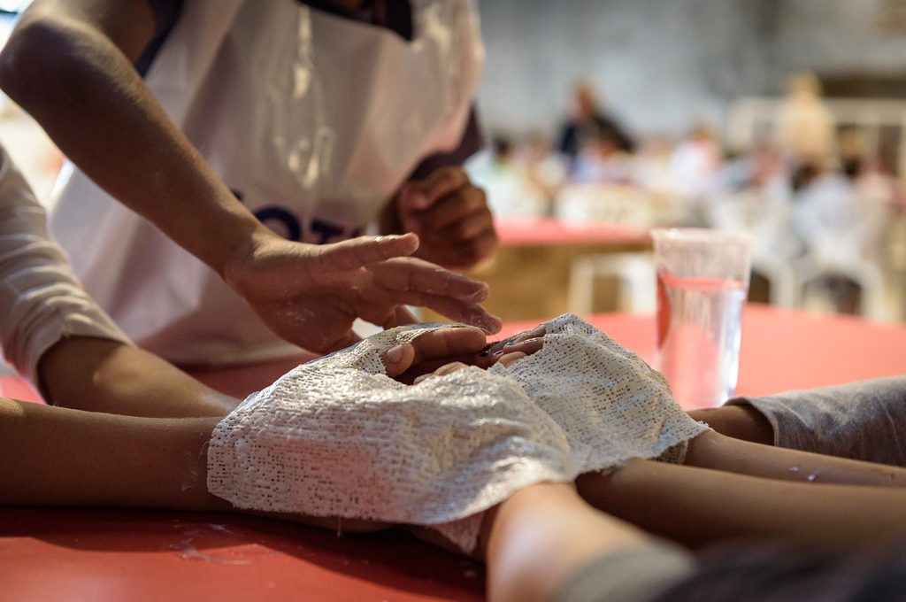 In uno dei laboratori più amati, i piccoli fanno il calco delle loro mani unite (con bende gessate Das) e ottengono una struttura a volte, simile a quella sotto la quale hanno camminato: 'Beyond Bending Zurich'
