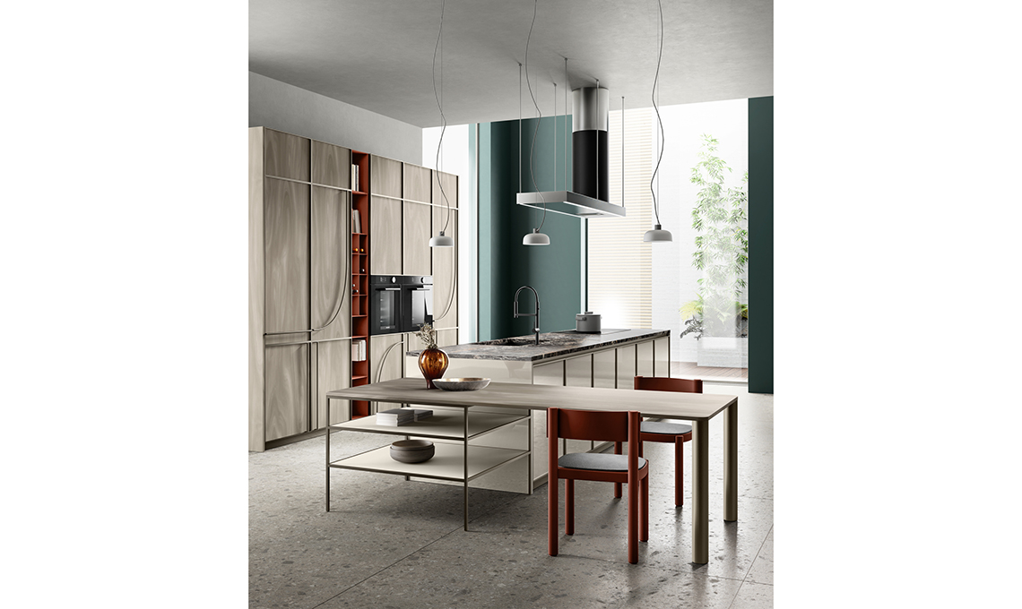 Il sistema d’arredo Jeometrica progettato da Luca Nichetto per Scavoliniè una micro-architettura che evoca la pulizia funzionale di Gio Ponti... La maniglia con andamento circolare e le gole continue disegnano scenari sempre diversi, declinabili anche negli ambienti bagno e living. E, tocco ‘magico’, le sedie nuovissime ma che ricordano quelle delle cucine di quando eravamo bambini...