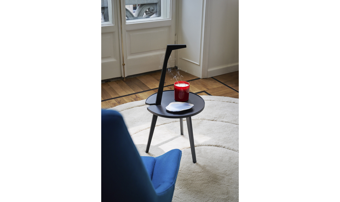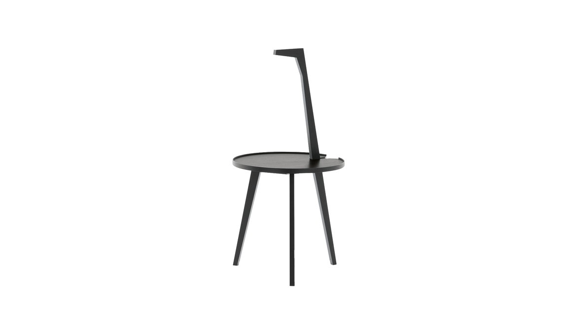 Come in altri progetti, l’ispessimento del legno c’è solo dove serve, nei punti di carico, mentre la struttura resta leggera. È proprio il piano a connettere le varie parti aumentando la percezione di equilibrio e stabilità. Pensato per essere portato a passeggio in giro per casa, si solleva con una mano, quasi più un vassoio che un tavolino!