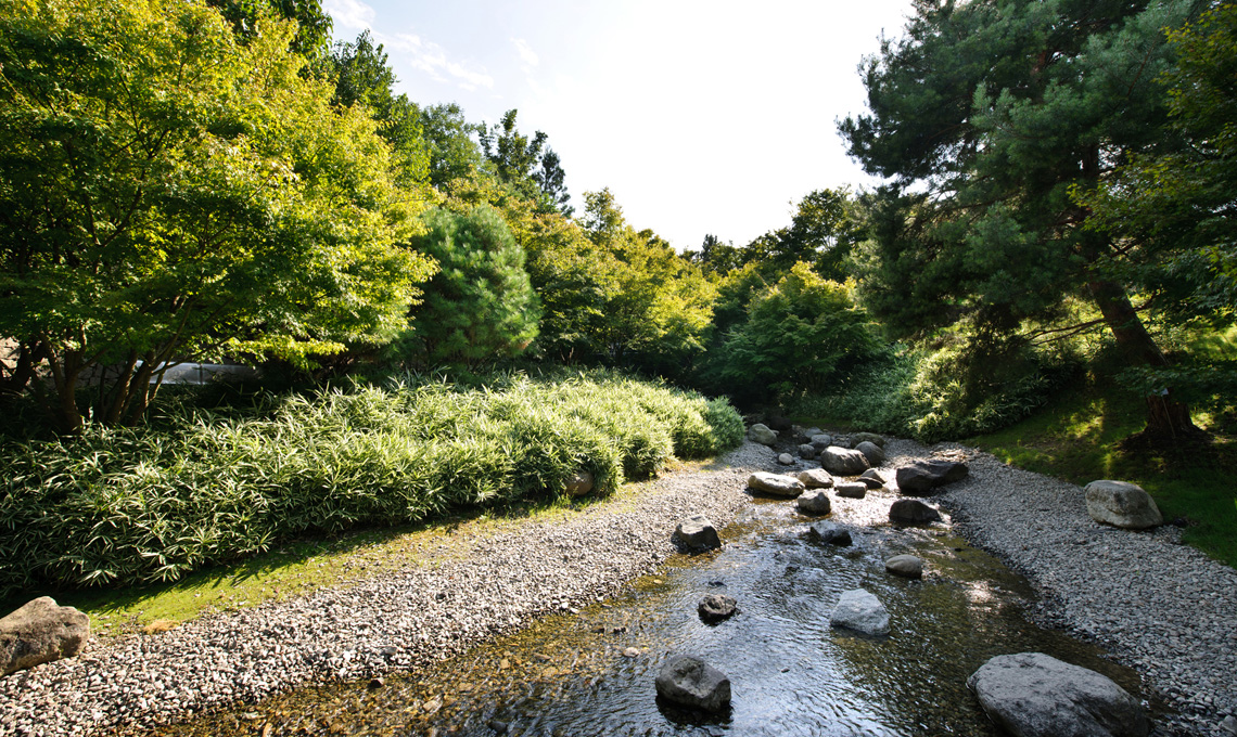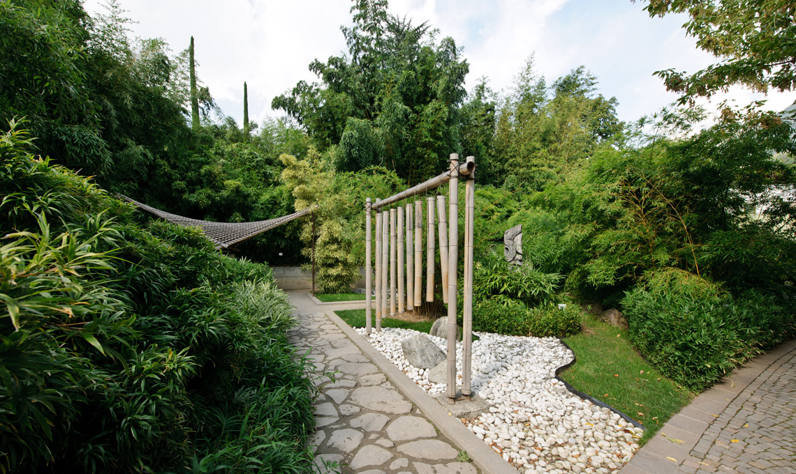 Ispirati, come si è detto, ai giardini europei, quest’area è ricca di fontane; c’è anche un labirinto disegnato da siepi di tasso, al cui centro si erge un melograno e un Giardino dei sensi, in cui sono piantate erbe aromatiche e arbusti profumati.