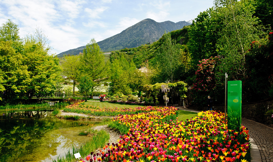 Qui le piante esotiche riescono a crescere all'aperto, senza l’ausilio di serre, e le fioriture sono rigogliose: sono allestiti 80 ambienti botanici (fra paesaggi naturali e antropici) suddivisi in quattro aree tematiche: ci sono i tradizionali Paesaggi dell'Alto Adige, che accompagnano alla scoperta della vegetazione autoctona, i Boschi del Mondo propongono miniature delle foreste americane e asiatiche, i Giardini del Sole deliziano con il loro fascino mediterraneo, i suggestivi Giardini Acquatici e Terrazzati ispirati ai giardini europei.