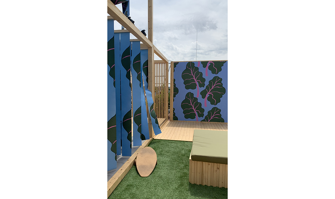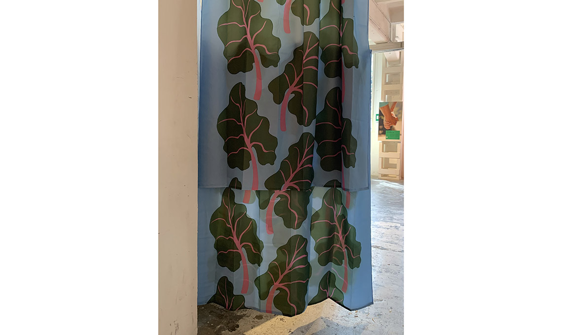 Il pattern si ispira alle caratteristiche foglie di rabarbaro che si vedono spesso crescere in prossimità delle saune, nella campagna finlandese, ed è stato stampato sul primo prodotto della collezione, una tenda doccia realizzata in poliestere riciclato.