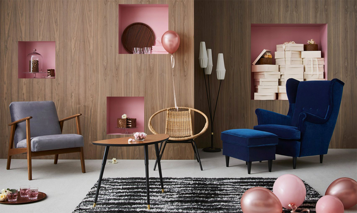 La collezione Gratulera dedicata agli anni ’50-’60 è caratterizzata da linee classiche e legni scuri. Tra i pezzi proposti il tavolino Lövbacken ispirato al designer Gillis Lundgren a cui si devono i mobili smontabili e confezionati in pacchi piatti. Non manca neppure la poltrona Gagnet in rattan, lanciata nei 1958 in occasione dell'apertura del primo negozio a Älmhult.