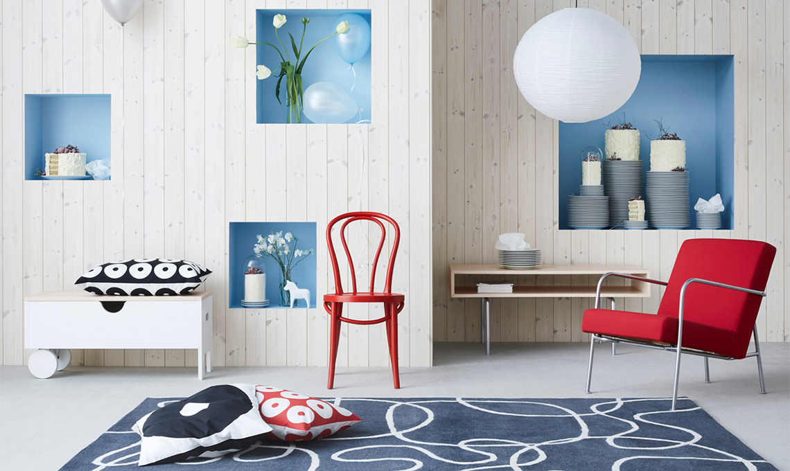 La collezione dedicata agli anni ’70-’80 gioca con i colori brillanti e vividi tipici dell'epoca. Non poteva mancare Klippan, lo storico e primo divano Ikea.